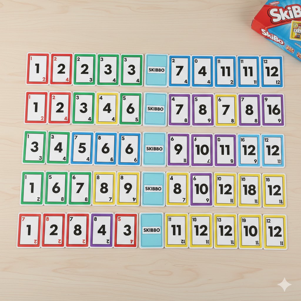 Skibbo-kortti on pelin voimakkain työkalu. Se toimii ”wild cardina”, eli se voi edustaa mitä tahansa numeroa väliltä 1–12. Jos tarvitset numeron 7 jatkaaksesi rakennuspinoa, voit käyttää Skibbo-korttia sen tilalla. On kuitenkin tärkeää pohtia, milloin jokerin käyttö on todella hyödyllistä. Usein on parempi säästää jokeri tilanteeseen, jossa se mahdollistaa oman peruspakan päällimmäisen kortin pelaamisen, sen sijaan että käyttäisit sen vain päästäksesi eroon käsikortista. Skibbo-kortteja on pakassa rajallinen määrä, ja niiden oikeaoppinen ajoitus on usein avain voittoon.